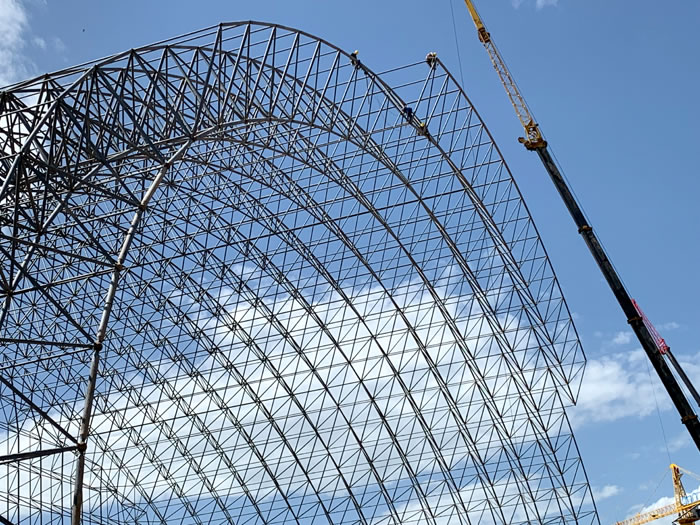 (2)网架加工前应对现场尺寸进行复测,确认无误后方可进行加工、安装;网架制作、运输、安装应遵守《空间网格结构技术规程》JGJ7-2010、《钢网架临湘螺栓球节点》JG/T 10-2009、《钢网架临湘螺栓球节点用高强度螺栓》 GB/T 16939-2016、《临湘钢结构临湘工程临湘施工规范》 GB50755-2012、《临湘钢结构临湘工程施工质量验收标准》 GB50205-2020。